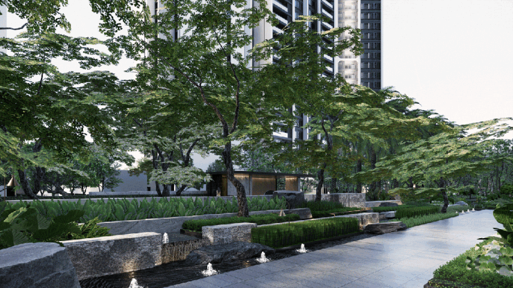 在国兴CBD,土地资源稀缺。豪庭铭苑通过打造隐奢园林,实现了空间的最大化利用。项目依托地块特色,设计了艺术花园、叠翠水苑和秘境花园三大主题花园,营造出静谧而奢华的氛围。