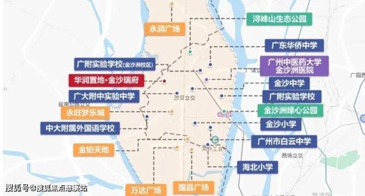 从上帝视角俯瞰,金沙洲正位于广州主城西部,与传统老城荔湾区仅一桥之隔,而与珠江新城的直线距离也不过约14公里。