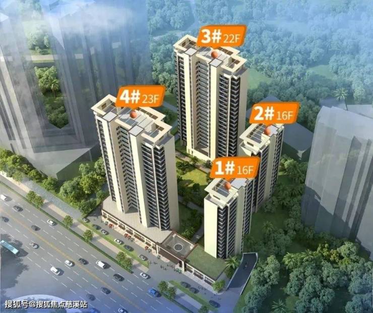 整个项目一共规划了4栋住宅,2栋为16层的小高层,2栋为22-23层的高层。