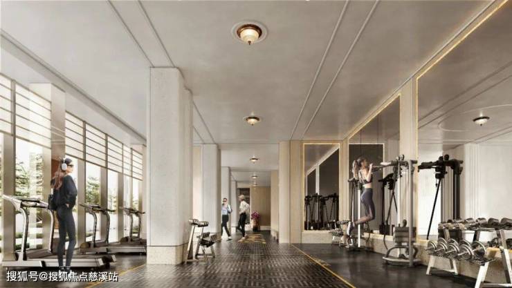 庭院两侧搭配社区会所,有私宴厅、健身房等,营造了充满松弛感的生活氛围。
