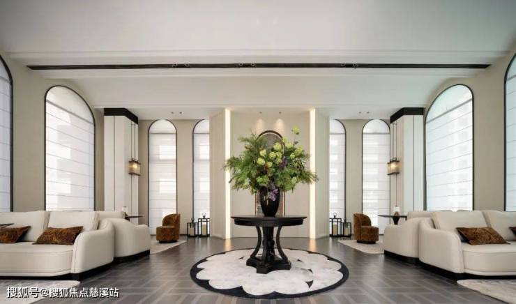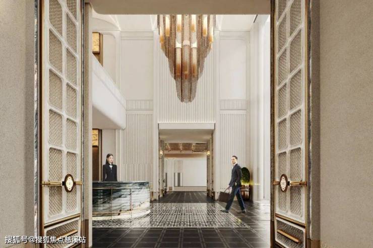 约两层通高的设计,营造了酒店式大堂的归家礼序。
