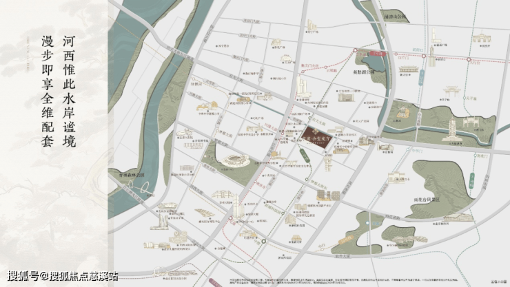 中建·合玺东方位于河西位置最好、配套最全的中部,紧邻华东第二大CBD,被金鹰世界、华采天地、IFC等高端商业包围,浓浓的高阶烟火气。