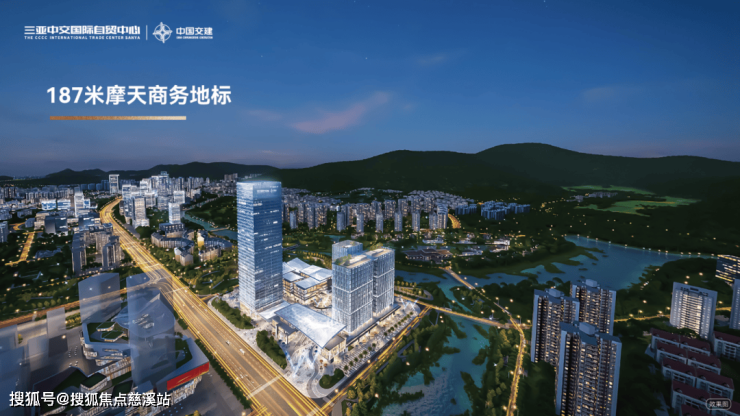 中交国际自贸中心位于三亚市吉阳区迎宾路CDB东岸的中心区域,是 以写字楼为核心的综合性项目,致力于吸引大型行业龙头企业与总部企业。写字楼占地面积39.61亩,总建筑面积约21.6万平方米,包含187米高的5A甲级总部办公楼、总裁会客厅、城市菁英空间、企业家独栋以及漫享商业街区等多元业态, 形成了一个集办公、居住、商业于一体的多元化商务生态圈,将有助于带动片区总部经济发展,为经济发展增添强大动力。
