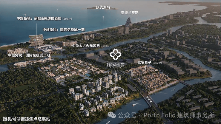 该项目位于三亚市海棠湾黄金地段北端,与亚龙湾和清水湾相连。项目位于中旅免税城西北侧。用地周边有河道及景观绿化带。