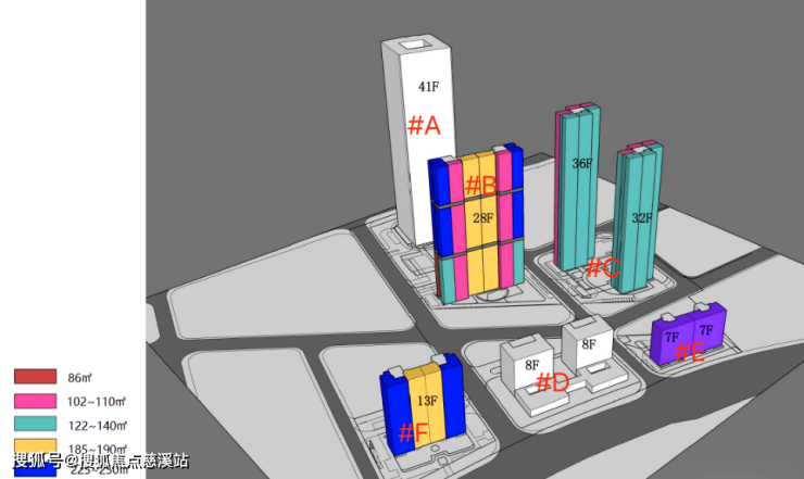 总共规划:AD地块写字楼,BCEF地块大平层公寓