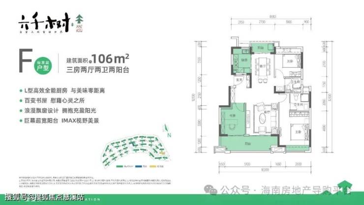 F户型 (宽景阳台设计——约106㎡阳光三房)