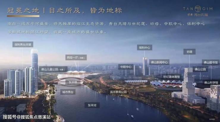 保利秀台天珺项目位于佛山市东平河北岸,是保利为佛山打造的又一城市荣耀作品,城市秀台是东平水轴文化长廊的亮点项目之一,也是佛山唯一一个跨路连接社区的城市观景台。