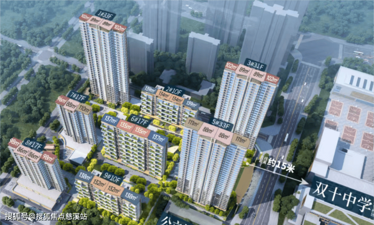 层高:1# 5# 33F 3# 31F 6# 7# 8# 17F 2# 10# 10F 2# 6# 9# 是第四代住宅