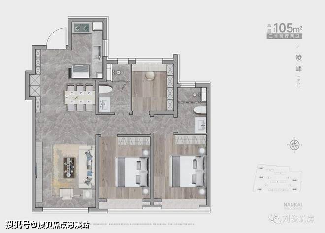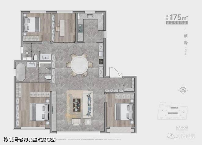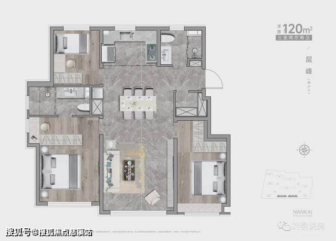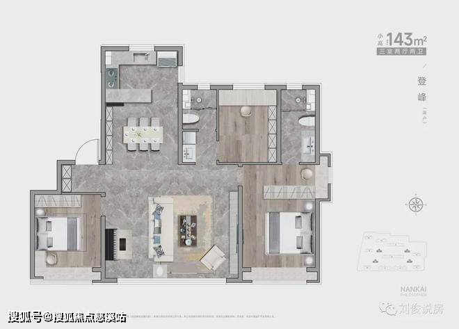 (2)4栋小高,两梯两户,143平,三室两厅两卫。