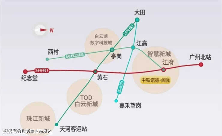 若论城市核心地段的评判标准,交通枢纽地位无疑是关键要素。中铁诺德阅泷坐拥广花路黄金走廊优势,未来将实现双向8-10车道的立体交通体系。项目周边双地铁交汇(8号线北延段与24号线江府站均处于详勘施工阶段),形成高效出行网络。更可快速接驳雅瑶快速路、机场第二高速等城市主干道,构建四通八达的交通体系,实现全城高效通勤。