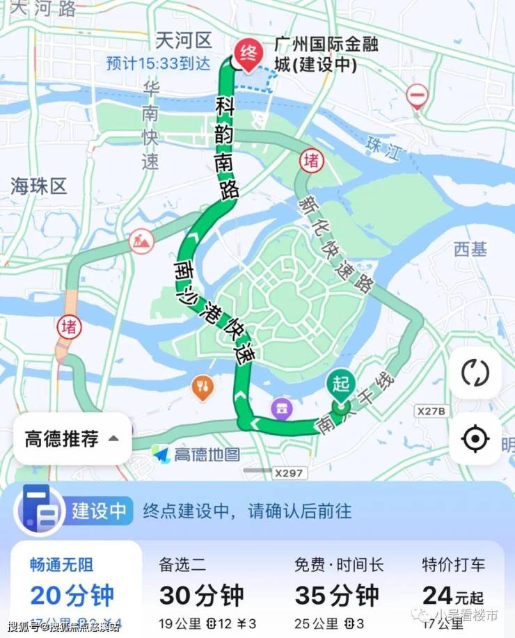 自驾去金融城:南大干线转南沙港快速,去往金融城17公里,高速费4元,全程耗时20分钟左右。
