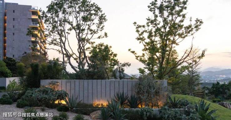 在前期规划过程中,景观已提前介入处理场地与市政道路的高差问题,设计将每户一一调整标高重新反提,以确保每户入户的最优感受。同时处理坡顶道路对于内部的私密性与降噪性,丰富植被层次,并植入隔音板。