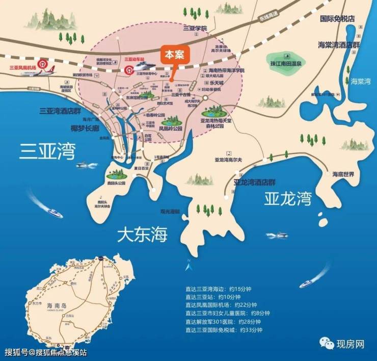 潜力地段:落位三亚中央商务区拓展带(迎宾路与荔枝沟路交汇处),毗邻在建的华侨城欢乐海岸
