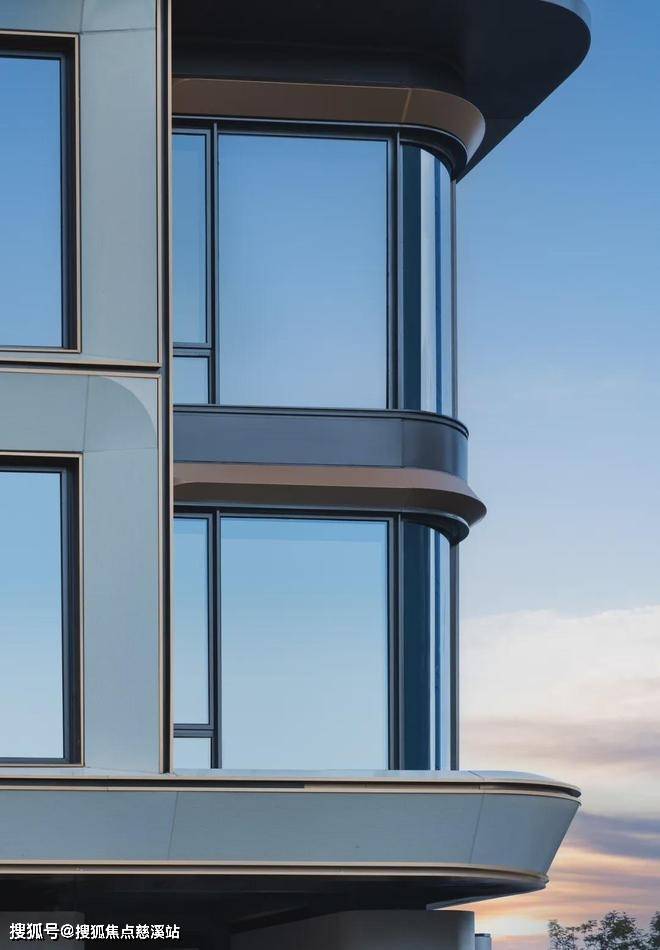 弧线铝板搭配大面积流动曲线玻璃造就时尚画框的艺术立面。