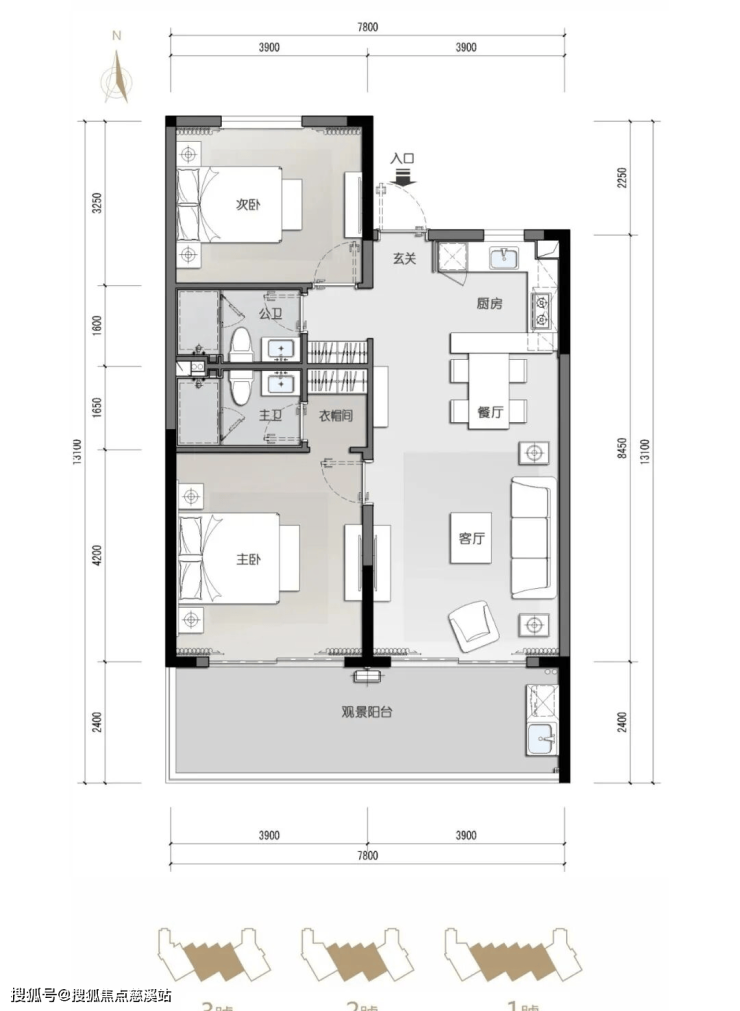 梯户比:1#楼2梯5户,2#-3#楼2梯4户