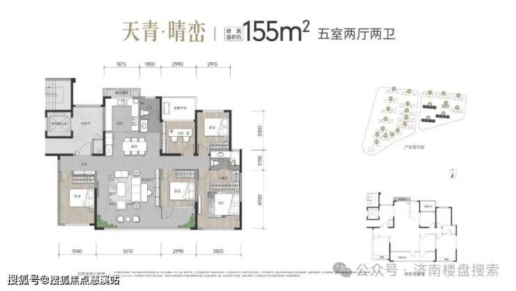 约155㎡五室两厅两卫:私享入户电梯前厅;约15.4米南向面宽,巨幅落地窗;LDKB一体,约8.5米开敞式双联阳台;北向宽境设备平台空间;约3.8米主卧套房。