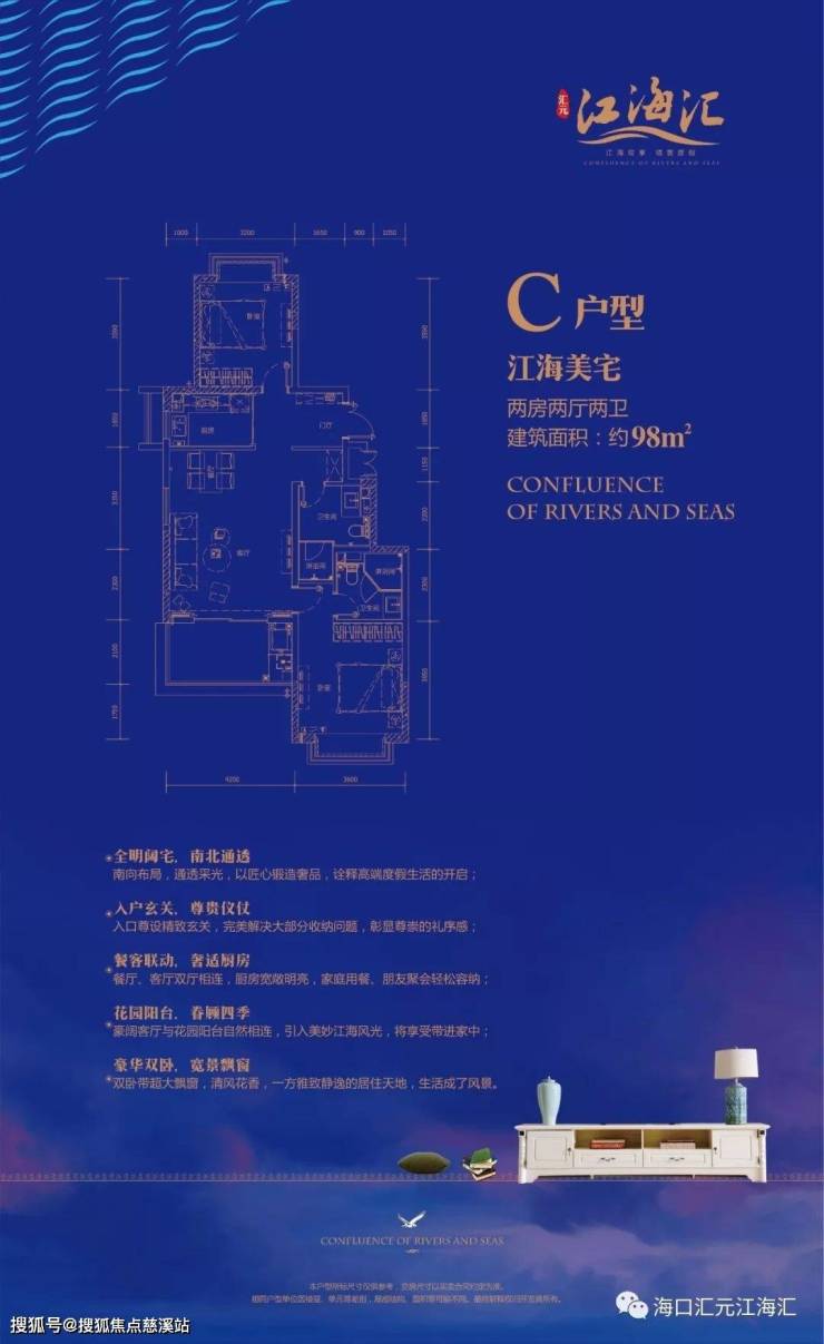 98~172㎡低密揽景洋房,稀度臻藏,方正实用,飘窗尽纳自然风光,朝南而生阳光挥洒,实现户户有江景,露台花园,将居住空间向风景无限延伸,江海双享,诠释热带度假新生活。