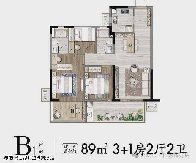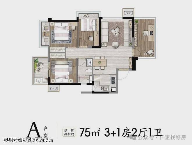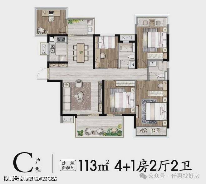 【户型面积】:建面约75-113㎡3+1房、4+1房;