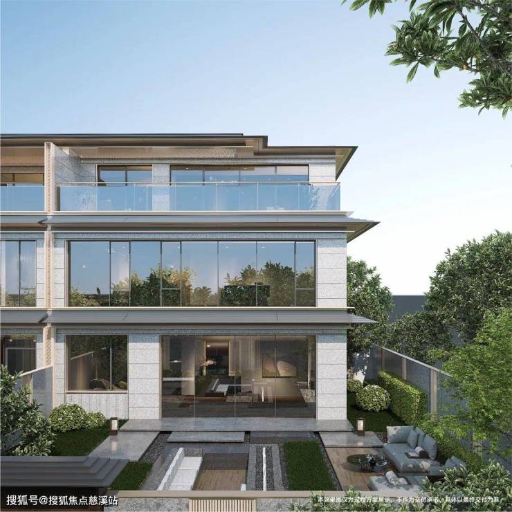 有别于传统别墅真石漆外立面设计,金茂璞印梅溪别墅立面紧跟潮流,极具现代风。