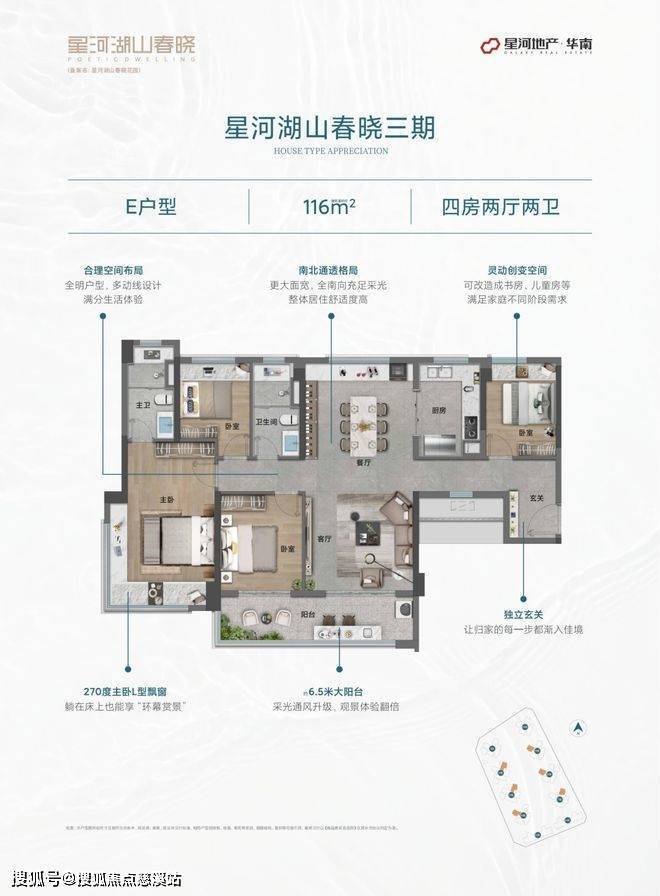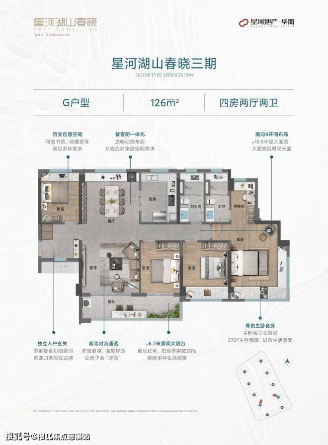 星河湖山春晓三期是斗门第一批新规后的产品,实用率超过100%。其首推的4栋,产品涵盖建面约126㎡四房、建面约116㎡四房、建面约89㎡三房。