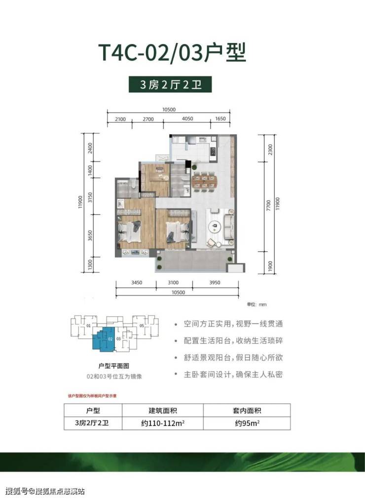 -全明户型,方正实用、公摊低,大主卧、超大景观阳台设计