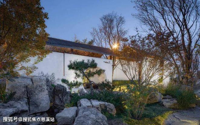 堆山砌石、小桥流水,穿过大门望向院内,落叶飘飘,芦苇摇摆,引导着居者进入书院山水的意境空间里。