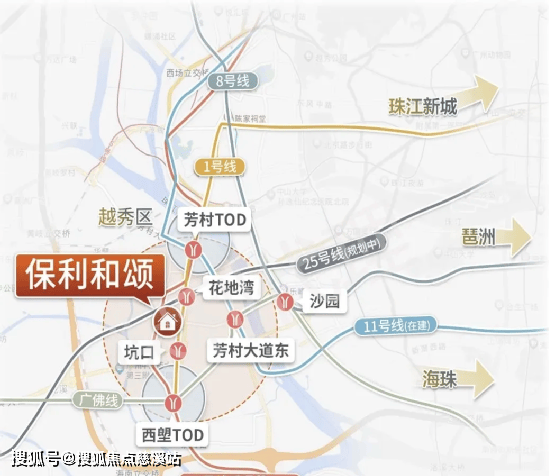 项目距离1号线地铁坑口站约650米,周边还有广佛线、地铁11号线、25-28号线
