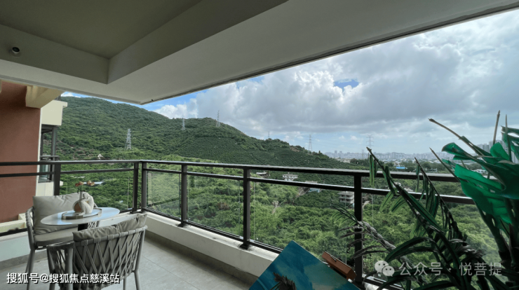 悦菩提的阔景阳台如同一个微型观景台,揽山瞰海,将大自然的壮丽景色尽收眼底。在这里,可以在微风轻拂看云卷云舒,听潮起潮落,感受山海间的四季更迭;也可以在夕阳西下时待客会友,与好友共归自然的怀抱。
