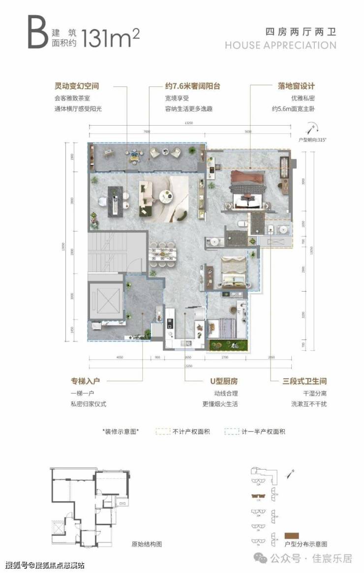🏠B户型: 约131㎡四房两厅两卫