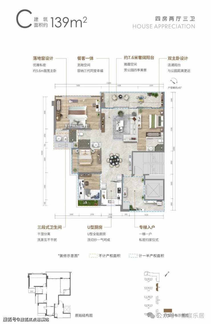🏠C户型: 约139㎡四房两厅三卫