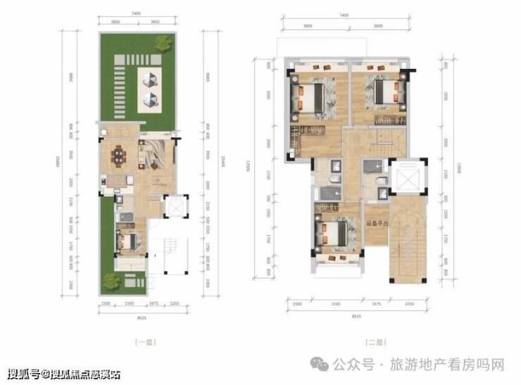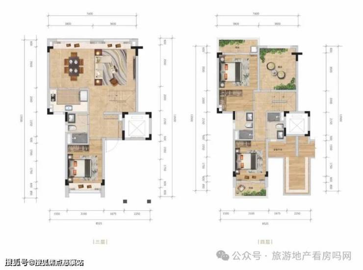 六期临湖叠拼别墅——C户型上叠,建面约138㎡,三房两厅三卫,送约15平米露台,双厅相接,南北双阳台,可观湖景。