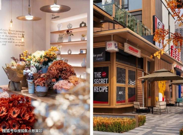 约47间开放式商铺沿社区边界排布,形成一条约270米长的Homewalk商街。肯德基、肯悦咖啡、花店等业态以折角外摆激活街道。口袋公园、花园式漫步空间等系统化景观编织其间,让城市街区成为社区场景的延伸。