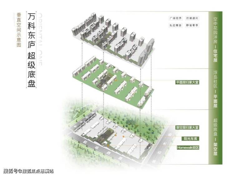 万科东庐以“超级底盘”颠覆传统社区规划,将整个花园洋房建筑整体抬高约5米左右,在滨海城市价值区打造一座「度假浮岛」,上层住宅与花园私享静谧,天然物理屏障,既消弭街道侵扰,亦使漫步园中如行云端艺廊。下层嵌入约1950㎡商业、阳光车库及上千平米业主共享空间,重塑安全与尊崇并置的归家仪式。