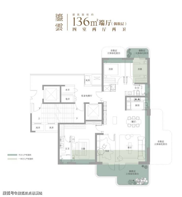 约136㎡的雲上院落户型,创新四代宅,使用率高达约105%。LDKG一体化无界双厅,端厅270°环幕揽景,世家同堂相聚从容;南向巨幕采光面,尽引阳光相伴;南北双露台,平权设计让每位家庭成员都拥享自我天地。