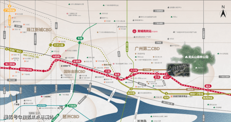 【 广州地铁地产 珑岄上城 】一脉天河CBD 5号线惟此低密大城;广州地铁地产 以“百年工程”标准造好房;以匠心著造一座低密大城;致力于重新定义TOD4.0人居新标准。 [ CBD之上开启 TOD4.0高效生活 ]! 地段丨广州第三中轴与第二CBD交汇“黄金十字路口”。 交通丨5号线双沙站地铁入户,4站金融城,10站珠江新城。 生态丨约5000亩龙头山森林景观,南眺珠江,自然与繁华共生 。 生活丨8000平垂直商业街区、紧邻约31万平华润万象商业(建设中)。 品质丨2.17容积率低密住区,1.5万平围合式中央园林,舒享鲜氧生活。