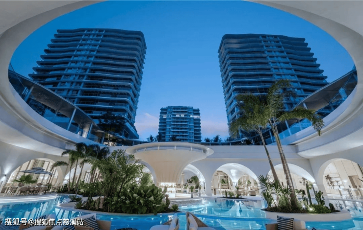 度假设计:建筑立面融合海浪曲线元素,社区打造下沉式会所、架空层泛会所、热带园林景观,营造沉浸式度假氛围。