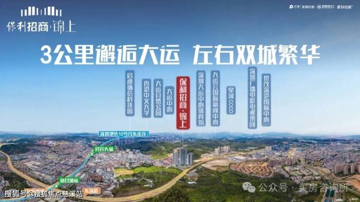 保利招商锦上位于天安数码城旁,深入深圳腹地,三面环深。5公里范围可直接享受龙岗大运、深圳平湖以及凤岗中心三大城市中心区所有配套。