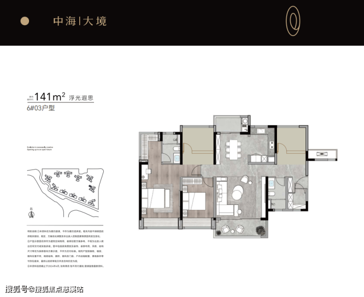 6栋03户型与首推的10栋02户型一致,南北双阳台+四开间朝南,仅有34套。