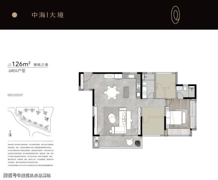 6栋04约126㎡户型,三开间朝南+南北双面采光充分满足家庭成员日常生活需求。