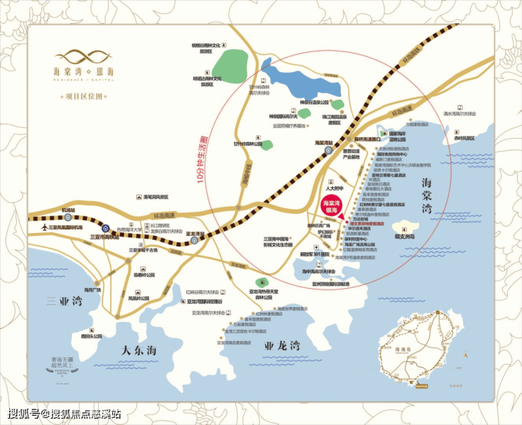 项目地理优势:位于海棠湾正中心区域,背山面海,湿地公园环绕,与蜈支洲岛隔海相望,自然资源与众多配套近在咫尺。两条高速中间位置,高铁站及公交多选择出行方式,为您的居住、度假、保值、投资提供强有力的支撑。