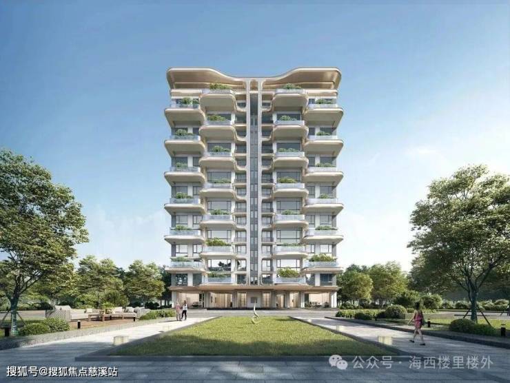 外立面:米黄色大理石+深色大理石+香槟色铝板+通透玻璃幕墙,造型上采用超流体全面屏立面与270°环幕视野飘窗。