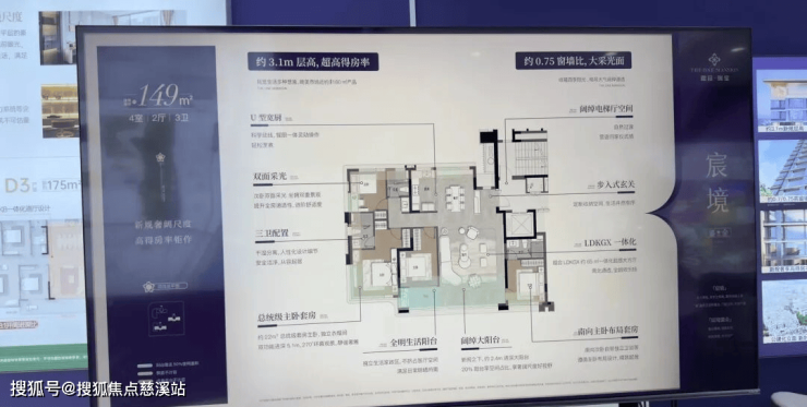 产品类型:3栋高层住宅,主力户型为128-149㎡大平层,2梯2户设计,共166套。