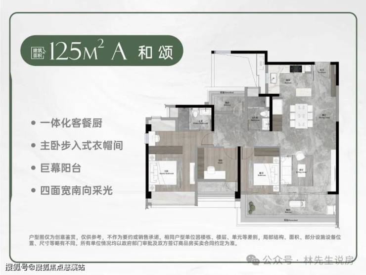 户型亮点:主推建筑面积约125-180平方米的南向宽幕瞰景大宅。