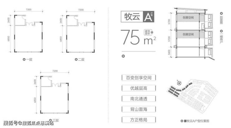 一期:75㎡牧云叠拼(90万起)、75-150㎡观海双拼、100㎡拾光双拼、85㎡望峯联排、75㎡听澜合院。