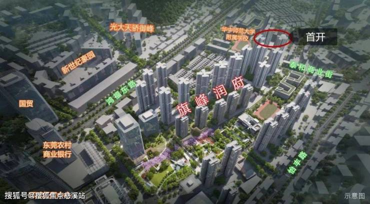 旗峰润府,位于东莞当前最繁华的地段,就在国贸旁,鸿福路与东莞大道的交汇处。