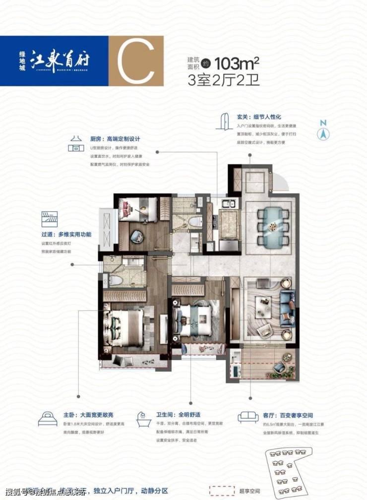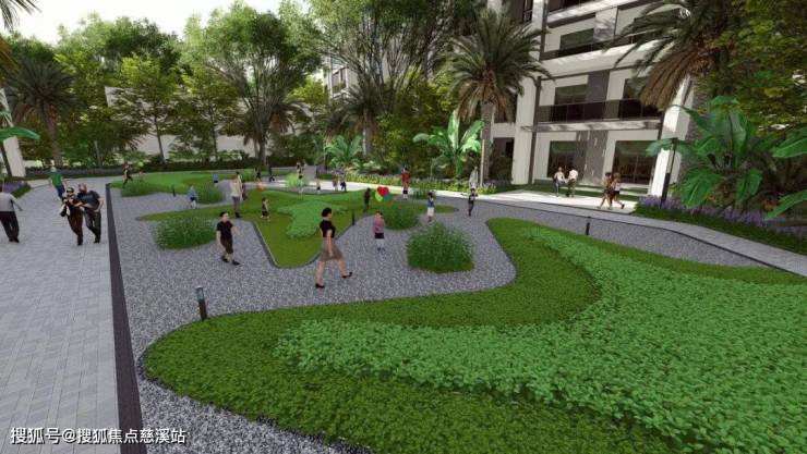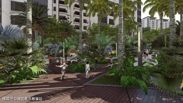 入口大堂区:酒店式入口设计,结合迎宾水景、椰风大道,让住户感受到归至如宾的归家仪式感。