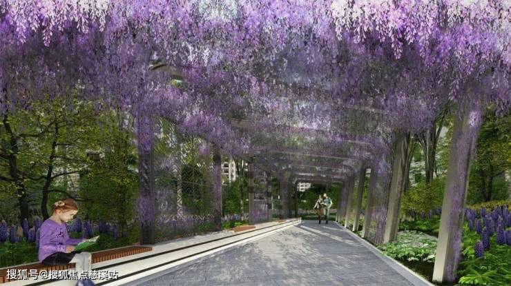 康养科普花园:景观设计融入四季花草、廊架,运用五维职务景观种植方式,对人感知的充分调动、光与影的巧妙结合。