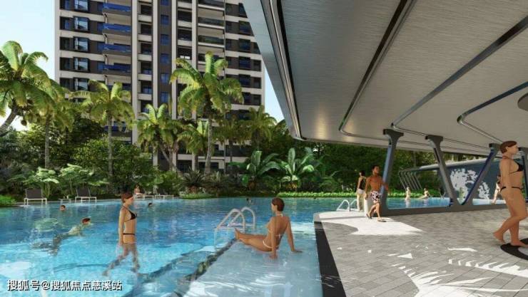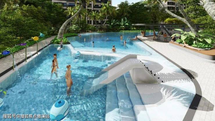 水上club:泳池以极具现代感的曲折线为整体,分为成人深水区、儿童潜水区、综合休闲服务区,满足多种景观需求。