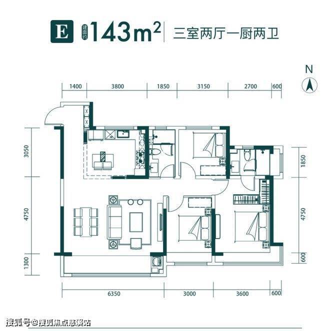 三个户型均为两卫设计,三室紧凑户型、四室宽景大宅均有。且阳台部分,全部都是落地窗设计,采光、空间、视野更好。