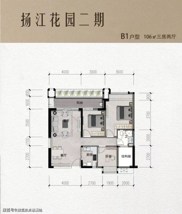 106㎡三房(阳台半赠送,飘窗花池结构板全赠送)